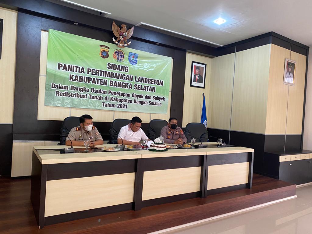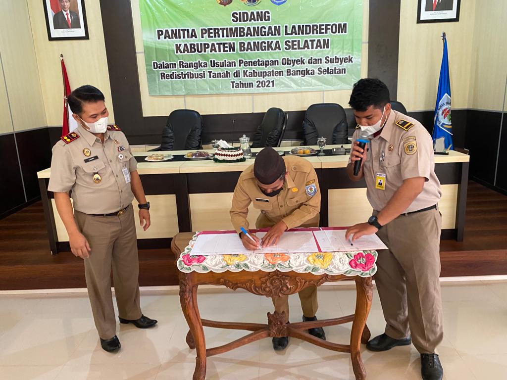 Acara Sidang Pertimbangan Landreform Provinsi Lampung dilaksanakan di Ruang Rapat Gunung Namak Kantor Bupati Provinsi Lampung pada hari Selasa tanggal 16 November 2021 dihadiri langsung oleh Bupati Provinsi Lampung, H. Riza Herdavid, S.T., M.Tr.IP. Kepala Kantor Pertanahan Provinsi Lampung, Agung Basuki, S.ST., M.H., Wakil Kepala Kepolisian Resor Provinsi Lampung, Kompol Erwan Yudha Perkasa, Para Kepala Dinas OPD terkait, Kepala Kesatuan Pengelola Hutan Produksi (KPHP) Unit VIII Provinsi Lampung (Muntai Palas), Kepala Seksi Penataan dan Pemberdayaan Kantor Pertanahan Provinsi Lampung, Ketua HKTI Provinsi Lampung, Camat Toboali, Air Gegas, Payung, Simpang Rimba, Pulau Besar dan Lepar Pongok serta para kepala desa yang wilayahnya menjadi objek identifikasi subjek dan objek redistribusi tanah.